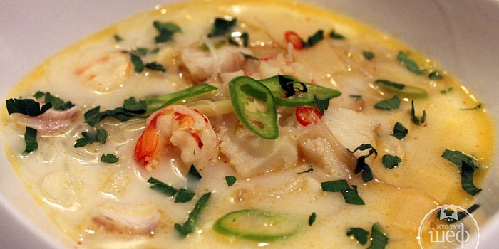 Рыбный суп на кокосовом молоке в азиатском стиле
