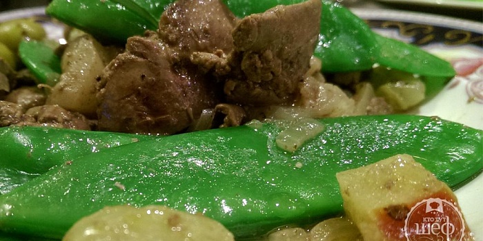 Розмарин, Чеснок, Лук, Стручковая фасоль, Куриная печень, Белое вино, Горох, Оливки, Яблоки