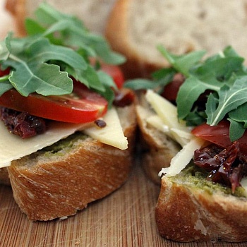 Брускетта с песто, фетой и вялеными помидорами