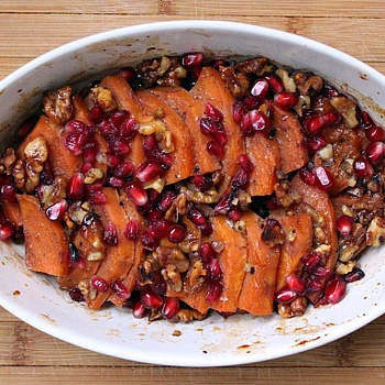 Гратен из сладкого картофеля (батата) с орехами и гранатом