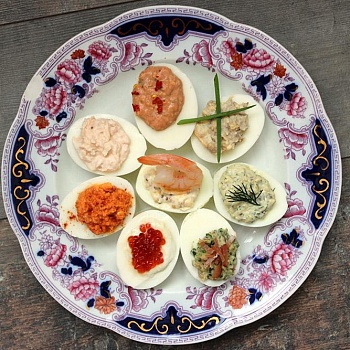 Яйца, Креветки, Лосось, Семга, Помидоры, Хрен, Огурец, Чеснок, Авокадо, Лимон, Лайм, Сливки, Горчица, Сметана, Чили, Бекон, Петрушка, Сливочное масло, Перец, Укроп, Томатная паста, Майонез, Зеленый лук, Кинза, Шалфей, Васаби, Красная икра, Сельдь