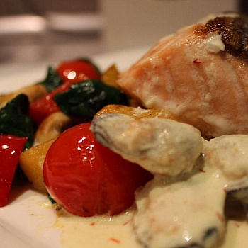 Мидии, Лосось, Шампиньоны, Шпинат, Лимон, Сливки, Черри, Куркума, Тыква, Шафран