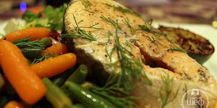 В предварительно разогретую сковороду вливаем оливковое масло. Кладем туда стейки и обжариваем по 3-5 минут (обратите внимание на размер и толщину Ваших стейков, от этого зависит время готовки) с обоих сторон. И ставим их в духовку на 5-7 минут. Мясо кижуча очень нежное, его легко пересушить, поэтом будьте внимательны и......полагайтесь на свой нос)))