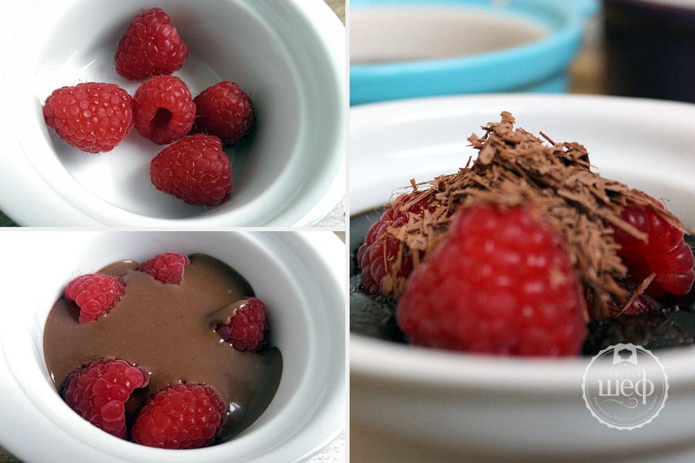 Давайте порадуем себя и приготовим шоколадный десерт с малиной (мне попалась отменная свежая малина, совершенно случайно. Можно использовать клубнику, смородину или другие ягоды, которые Вы любите. Купите замороженные, если сезон свежих ягод уже закончился).
